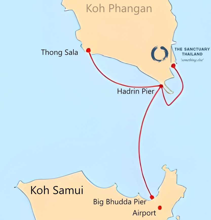 When you arrive at Haad Rin Pier, there will be taxi boat drivers waiting for customers bound for Haad Tien (where The Sanctuary is located). Please ensure you ask the taxi boat driver to transport you to Haad Tien.