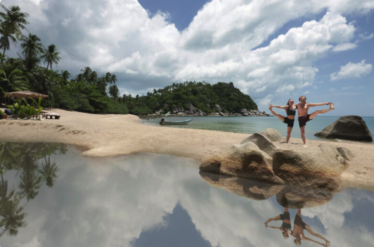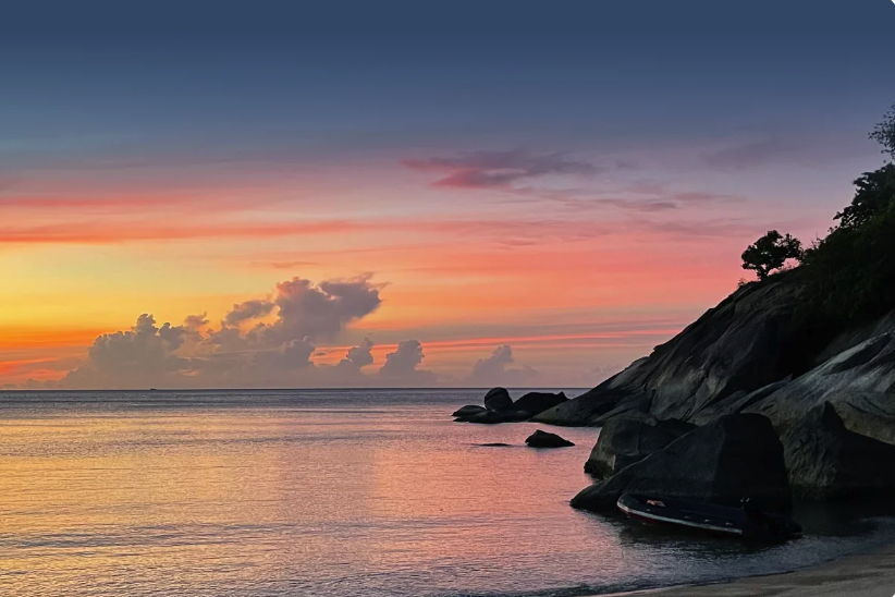 I’m perched on the end of a longtail boat, cocktail in hand, head to the wind. The silhouettes of thousands of people line the length of the beach in front of me, and a throbbing bass reverberates in my chest. Just two minutes ago, I was in the middle of that neon-clad throng, dancing full-moon-style with the best of them. And now here I am, making my James Bond-style getaway to quieter shores up the coast.